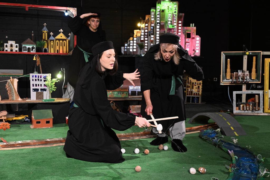 U predstavi igraju: Selma Ćosić, Adna Kaknjo, Lana Zablocki i Ermina Nišić. Scenografiju i kostimografiju predstave potpisuje David Zuazola, a izradu scenografije/lutaka potpisuje David Zuazola sa Adnom Kaknjo, Selmom Ćosić, Lanom Zablocki, Erminom Nišić, Zulfom Avdićem i Edinom Kobilicom. Za izradu kostima je bila zadužena Ajša Buro, a za muziku Alen Ruvić. Predstava je za uzrast 12+. Projekat je podržala Ambasada Španije u Bosni i Hercegovini. Naredna izveba ove predstave je zakazana za petak, 23. januar u 19 sati u Bosanskom narodnom pozorištu Zenica.