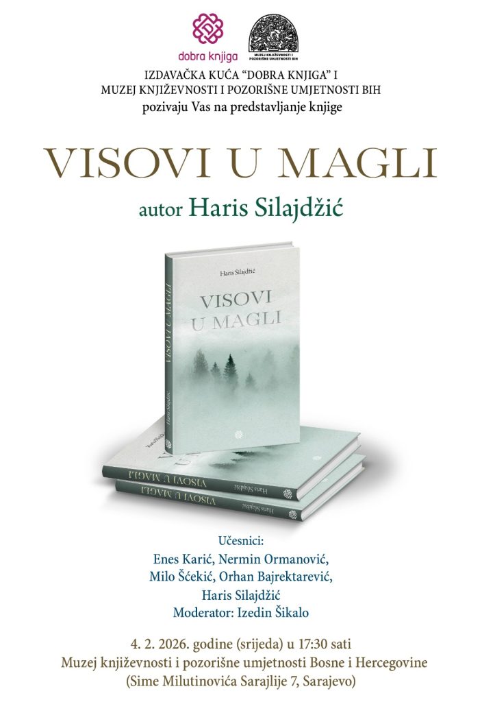 Knjiga autora Harisa Silajdžića „VISOVI U MAGLI“ biće promovirana u srijedu, 4. februara 2026. godine, u 17.30 sati, u Muzeju književnosti i pozorišne umjetnosti Bosne i Hercegovine (Sime Milutinovića Sarajlije 7, Sarajevo).