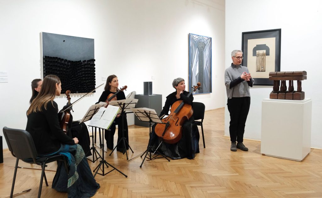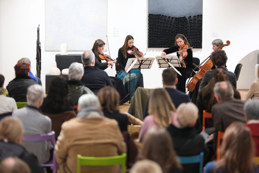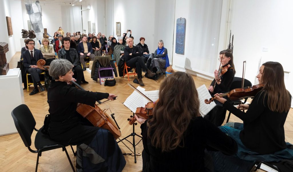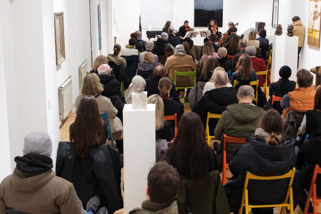 Nasuprot tome, Šostakovičevi gudački kvarteti otvorili su sasvim drugačiji emotivni i strukturalni registar. Njihova fragmentarnost, nagli lomovi i naglašena kontrastnost dobili su dodatnu težinu u galerijskom prostoru, među radovima koji također svjedoče o tenzijama između ideje i materije, kontrole i njenog gubitka. Izvedba je bila fokusirana, bez viška gestikulacije, oslonjena na jasno oblikovane linije i pažljivo izgrađene unutrašnje odnose među glasovima.