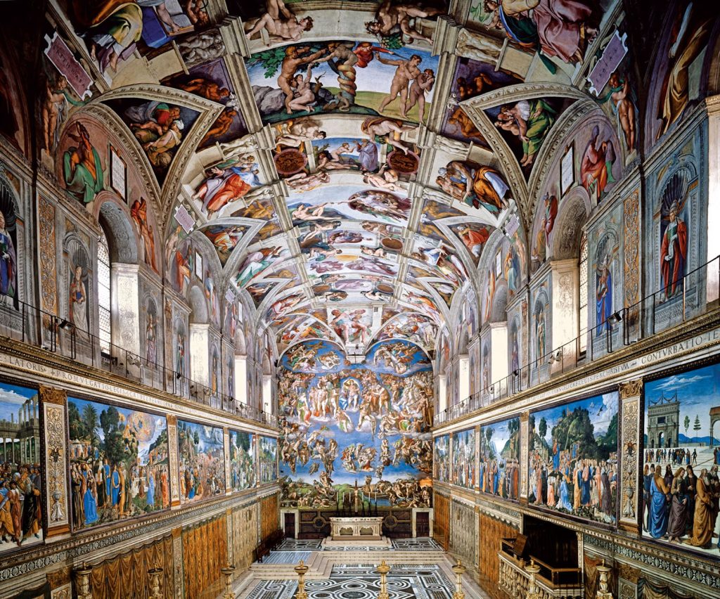 Kao slikar, ostavio je neizbrisiv trag freskama na svodu Sikstinske kapele u Vatikanu, posebno monumentalnom scenom „Stvaranje Adama“, jednom od najprepoznatljivijih slika u historiji umjetnosti.