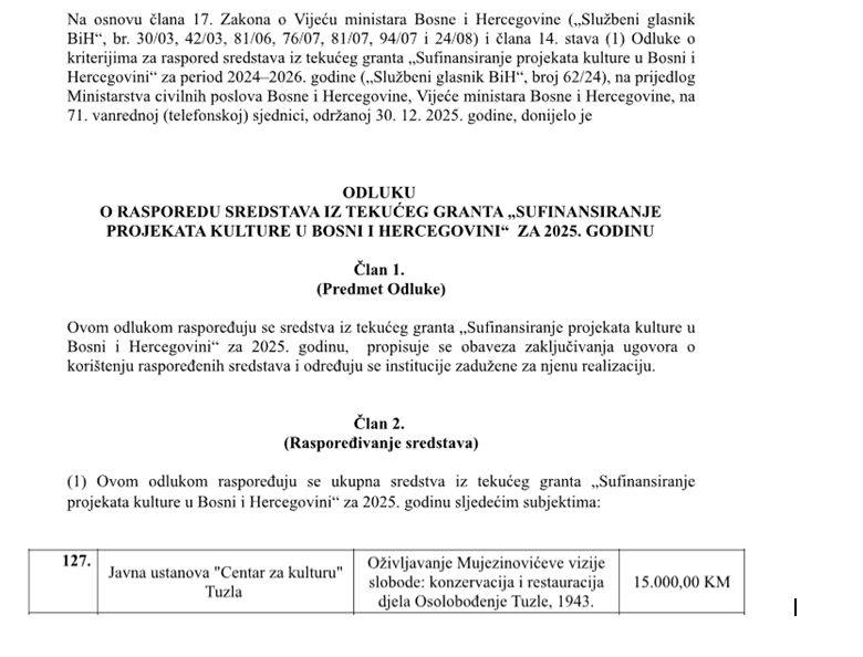 Projektni projedlog je podržalo Ministarstvo civilnih poslova Bosne i Hecegovine i realizovat će se tokom 2026. godine. Ovom prilikom se zahvaljujemo resornom Ministarstvu i ministrici, gospođi Dubravki Bošnjak, na pruženoj podršci.
