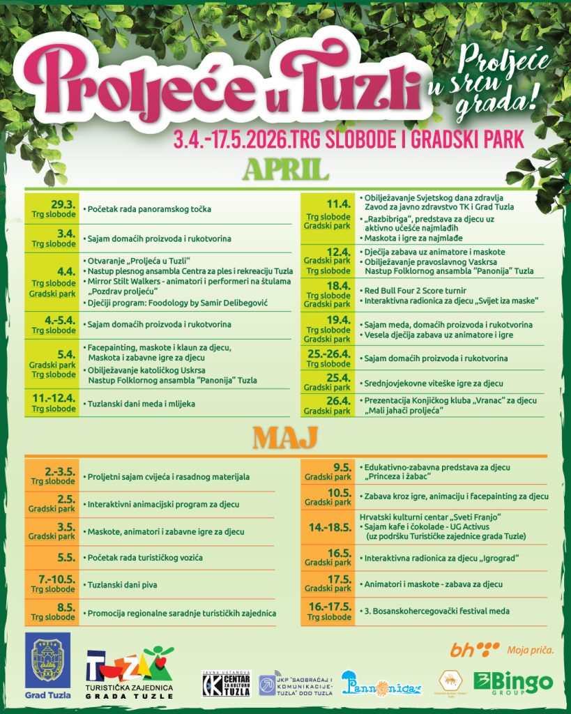 Manifestacija „Proljeće u Tuzli“ nastavlja se tokom aprila i maja 2026. godine, uz niz kulturnih, zabavnih i edukativnih sadržaja.