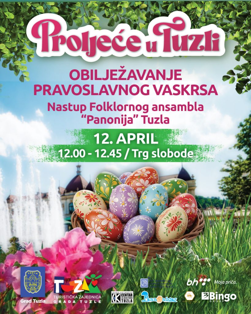 Ovaj vikend će svakako proći i u znaku vjerskog praznika, Vaskrsa, pa će na Trgu slobode u nedjelju, 12. aprila od 12:00 do 12:45, biti upriličeno obilježavanje pravoslavnog Vaskrsa, uz nastup Folklornog ansambla „Panonija“ iz Tuzle.