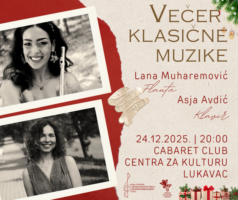 U srijedu, 24. decembra 2025. godine, s početkom u 20:00 sati, na sceni Cabaret Cluba održat će se večer klasične muzike u izvedbi dvije mlade i izuzetno talentovane umjetnice.