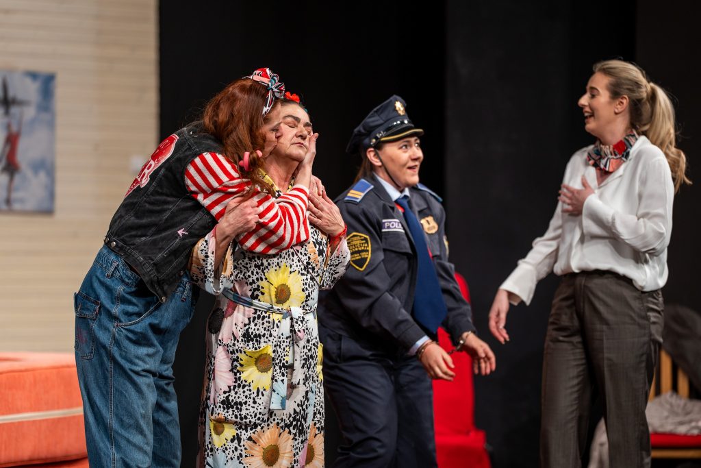 Zašto pogledati ovu predstavu? Zato što kroz humor i dramaturšku vještinu otvara pitanja odnosa moći, dugovanja, bespomoćnosti, ali i otpora. Likovi predstave nisu stereotipne „žene u nevolji“, već pune slojevitosti, spremne djelovati, pobuniti se i uzeti pravdu u svoje ruke.